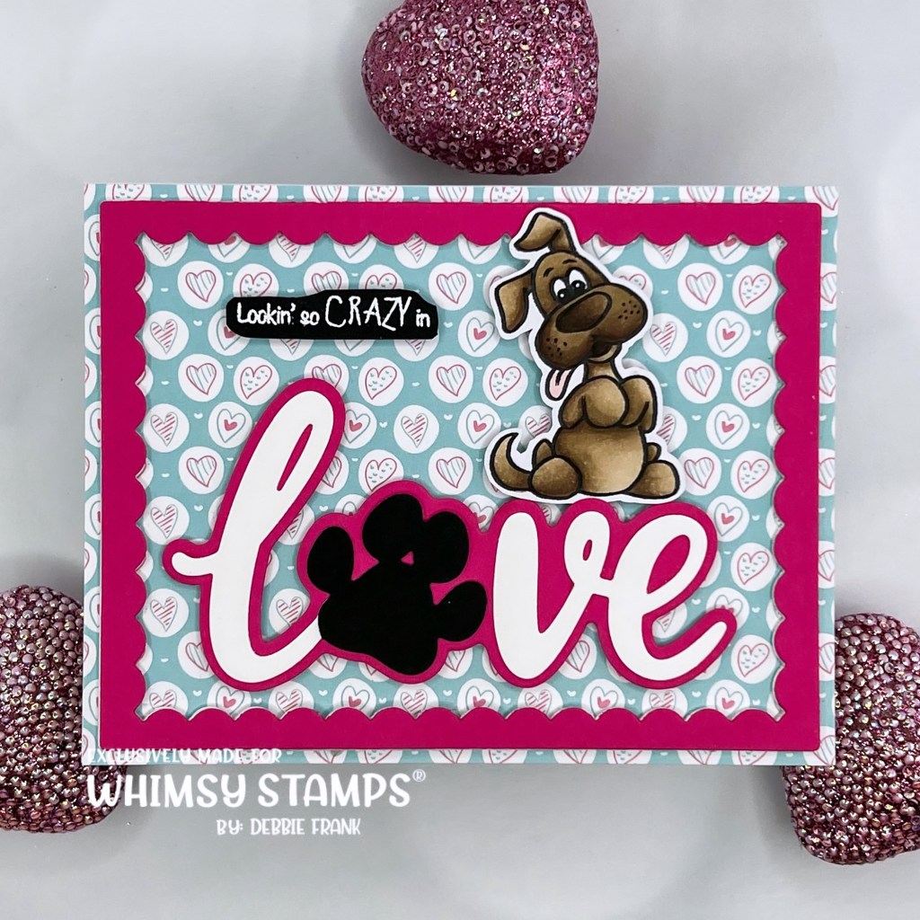 Starting off with the adorable Doggie Valentine Friends Stamp set, Inverted Scalloped Die set, Heart to Heart Designer 6 X 6 paper pad, and Paw Love Word and Shadow die all from Whimsy Stamps.