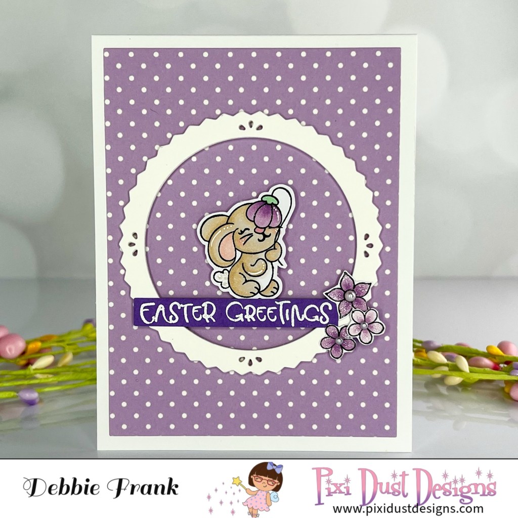 Today I am sharing the previously released Easter bunny stamp with the new Happy Easter 6 X 6 paper pad.