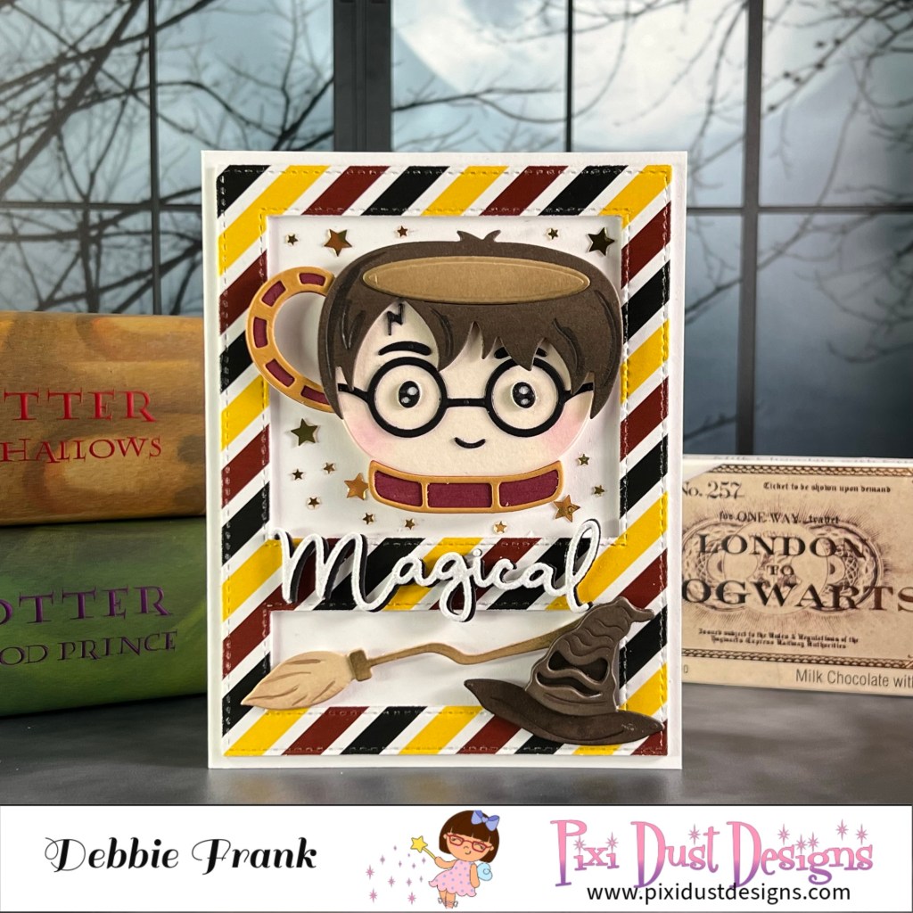 Hi friends, if you are a huge Harry Potter fan, then Pixi Dust Designs have you covered with the newest release! Today, I am sharing the adorable new Wizard Mug Dies!!! The mug dies are super fun to play with! You can make a shaped card, a treat box or a card.