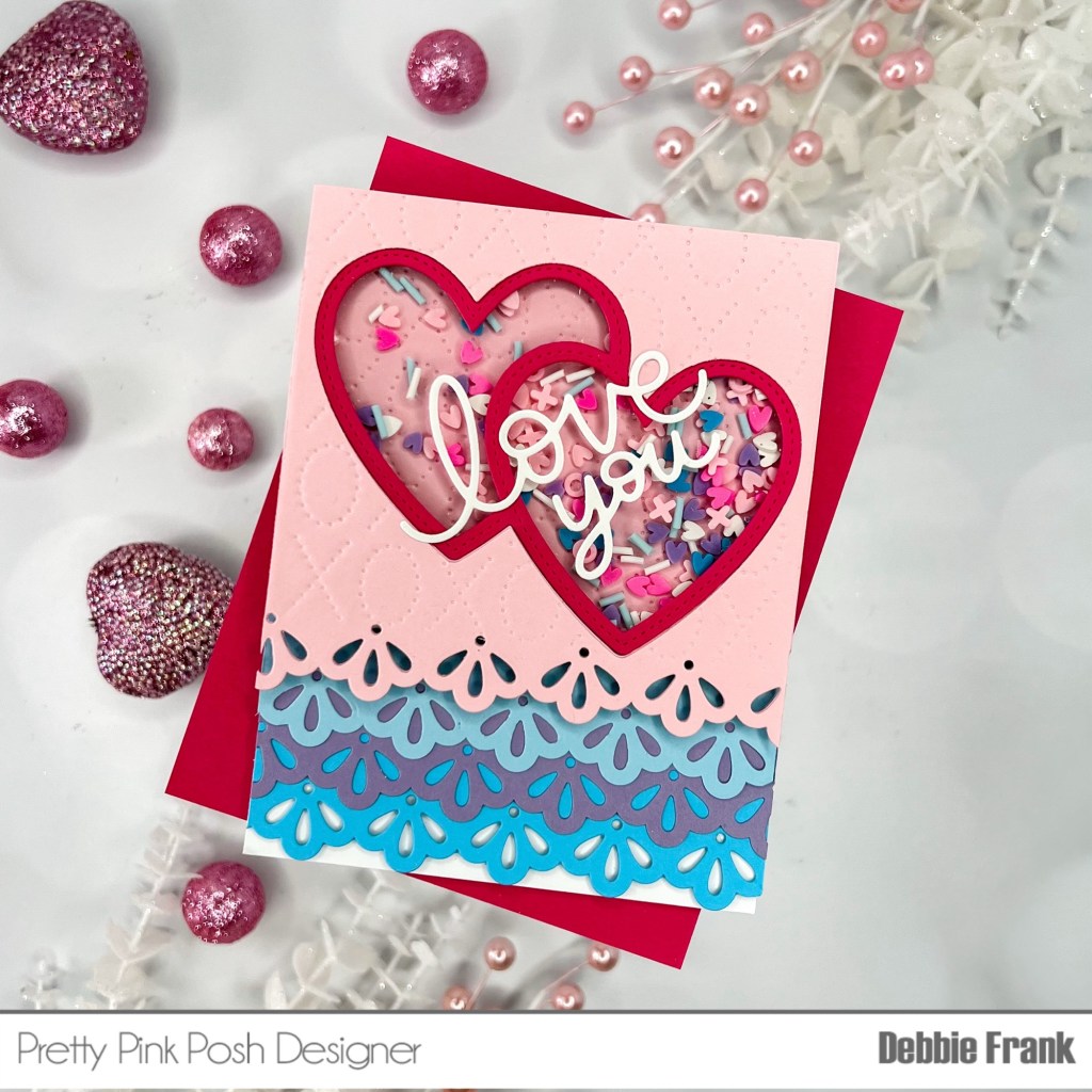 Hi friends, so I had this idea with the new Doily Borders Die! I figured if I did the layering with the cardstock to match the new Hugs and Kisses Mix this would give me the depth I needed to make the well for the shaker.