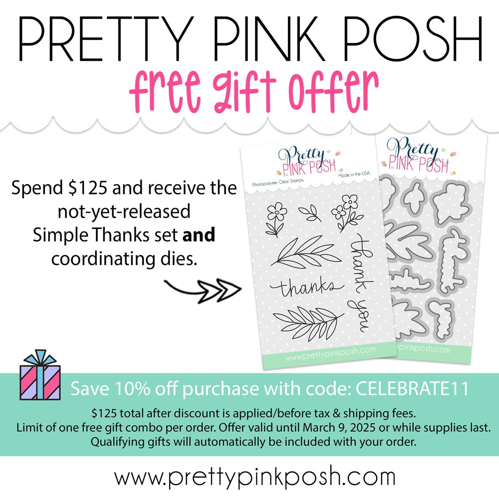 Hi friends! This is Day 4 of the Pretty Pink Posh 11th Birthday Celebration Blog Hop! I may be last, but not least with the new adorable Birthday Dogs & Cats Stamp Set from Pretty Pink Posh!