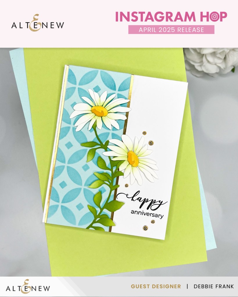 Hi Crafty friends, here with a beauty using the new Craft-a-Flower:Daisy Spray Dies from the Altenew 11th Anniversary Release! There is a Instagram Hop going on today with prizes, so make sure to go over to my Instagram page to start hopping along @franklyjustcards