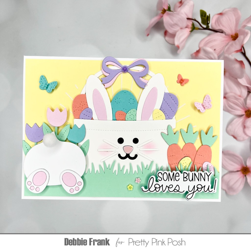Hi friends, here with the new adorable Easter Bucket Additions from the Easter Release over at Pretty Pink Posh. How cute is all the bucket additions!? I love them all and had so much fun making this 5 X 7 card in pastel colors!