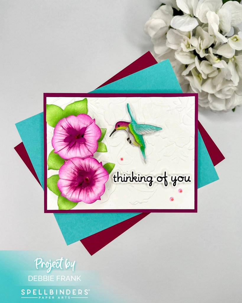 Hi friends, I wanted to share this lovely Petunia and Hummingbird Etched Dies of the Summer Solstice Garden Collection by Susan Tierney-Cockburn from Spellbinders May release.