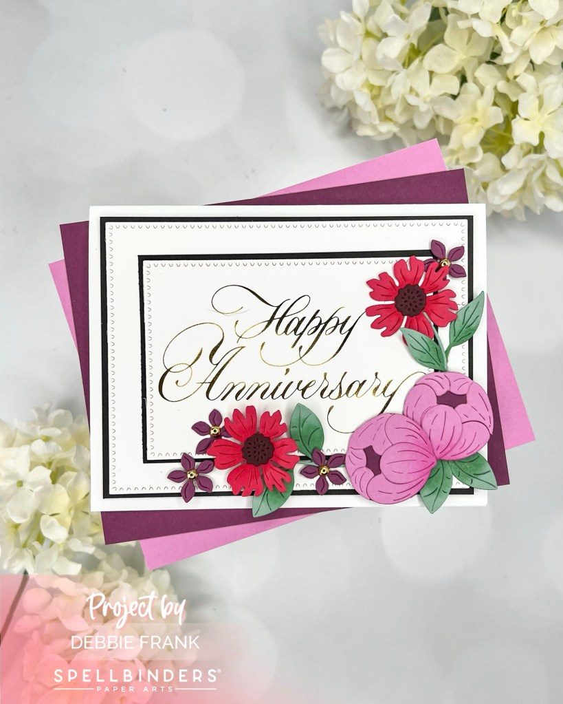 Hi friends, here with the new Paul Antonio Copperplates from the Spellbinders June release. These BetterPress plates are so fabulous! I have the Happy Anniversary CopperPlates and Hot Foiled them in gold and Black foil.