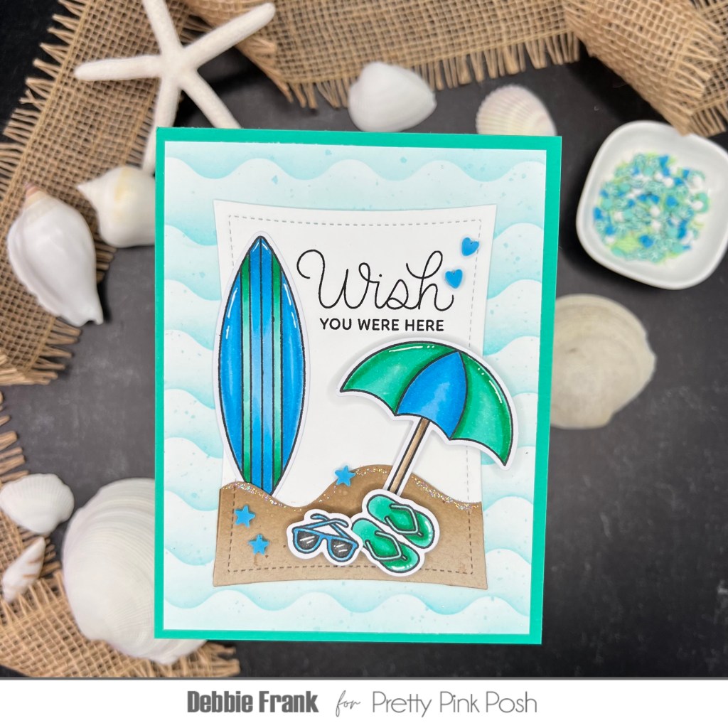 Hi Friends, the new Summer/Beachy Release over at Pretty Pink Posh with the Stitched Seashells, Beachy stencils, Sand castle Shakers is now available!! I had so much fun with all the summer themed products!