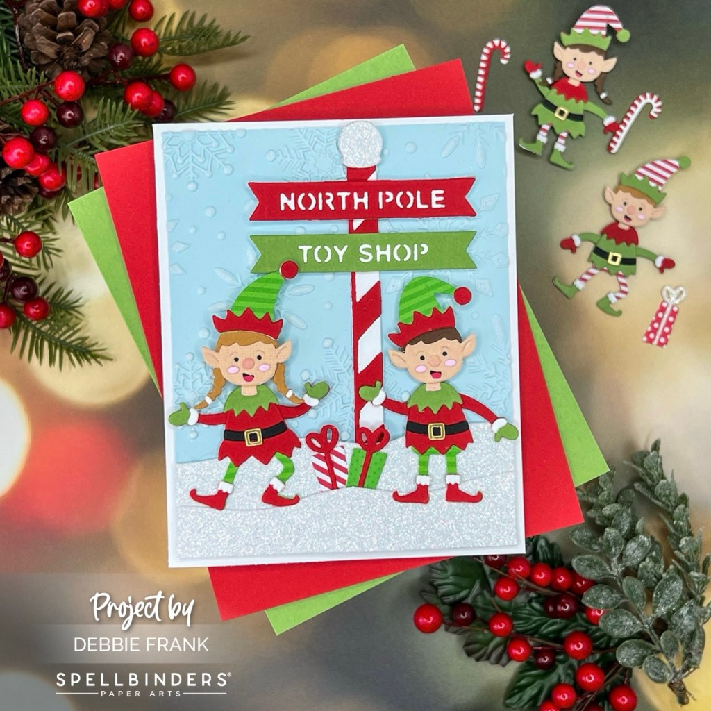 Hi Friends, The other day I shared TheClauses so today I have Santa’s Elves Etched Dies from Simon Hurley’s North Pole Collection over at Spellbinders July release. Christmas wouldn’t be the same without them to help Santa!😂