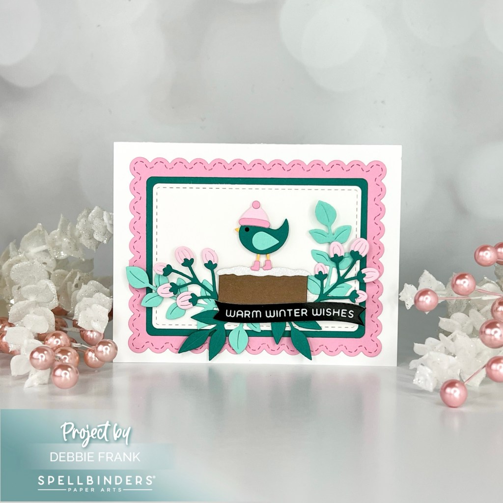 Hi crafty friends, how cute is this Little Birdie Etched Die set? When I first saw it I knew I had to have it. It also comes with branches but I chose to use the tree stump with snow on it.