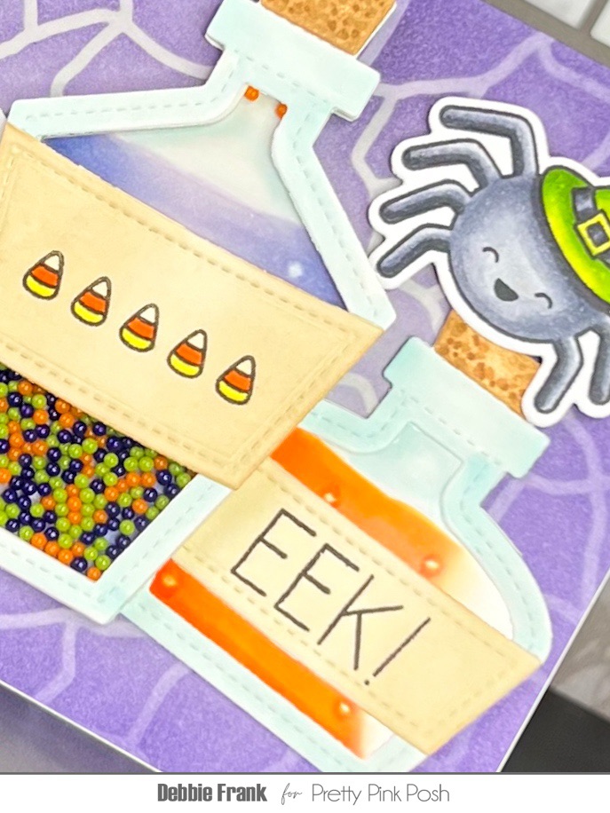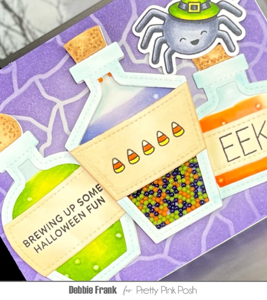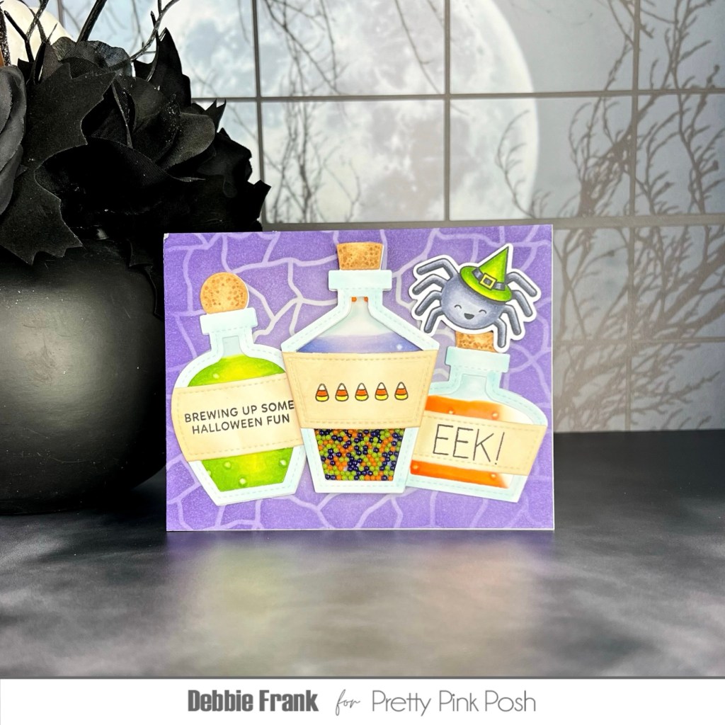 Hi friends, how much are we loving the new Halloween release from Pretty Pink Posh Stamps? Today I’m showcasing the new Potion Bottle Dies and the Crackle Background Stencil.