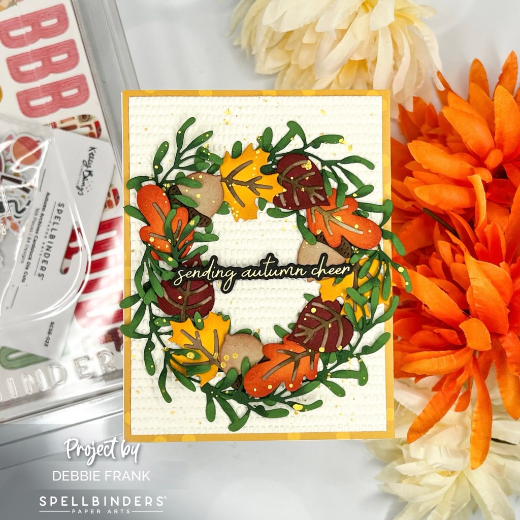 Hi friends, here with a wreath I made with the Falling Leaves Etched Dies from the Kelly Bangs Collection over at Spellbinders August release.