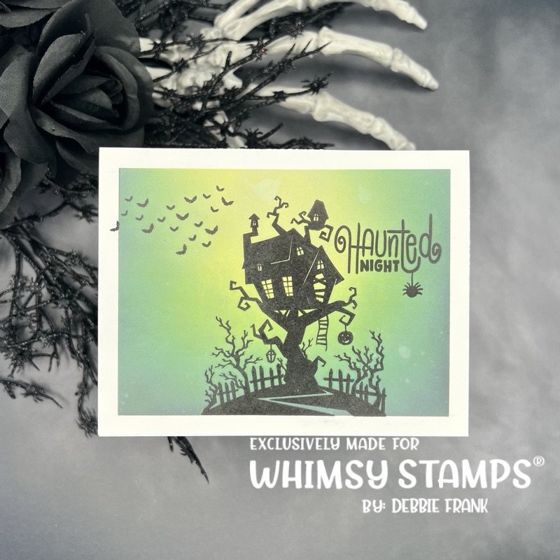 Hi friends, here today with a really simple card. Whimsy Stamps is known for doing up Halloween right?! But they also have a bunch of Silhouette stamps, so ink blend up a panel and stamp away.