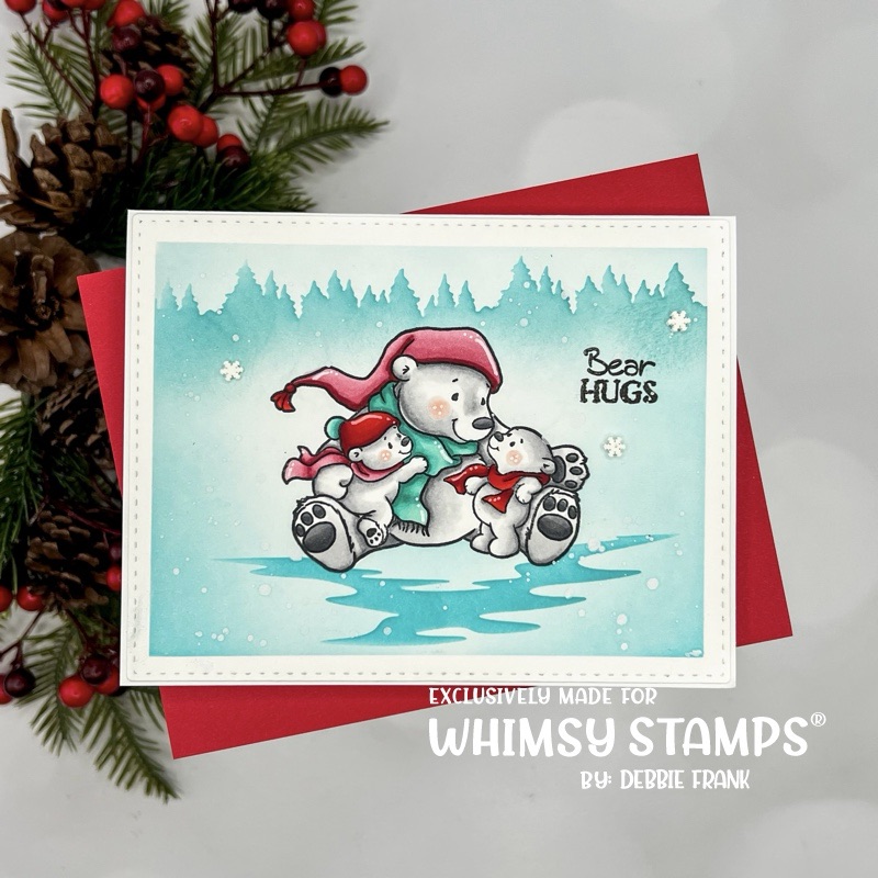 Hi Crafty Friends, here with a simple winter card using the Sheltering Love Stamp from Whimsy Stamps. I may have gone a little heavy on the gray coloring these polar bears in. Let’s just say they’re very dirty bears!😂