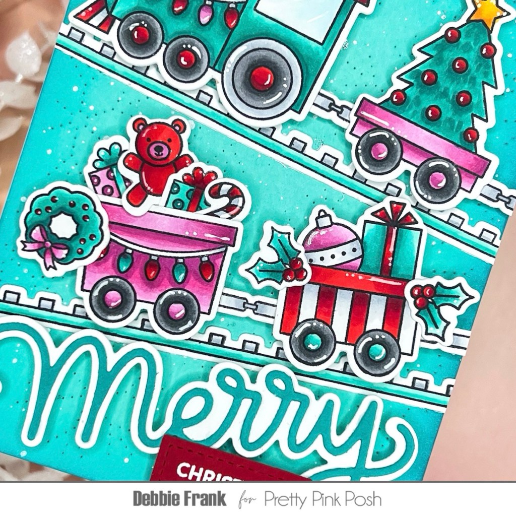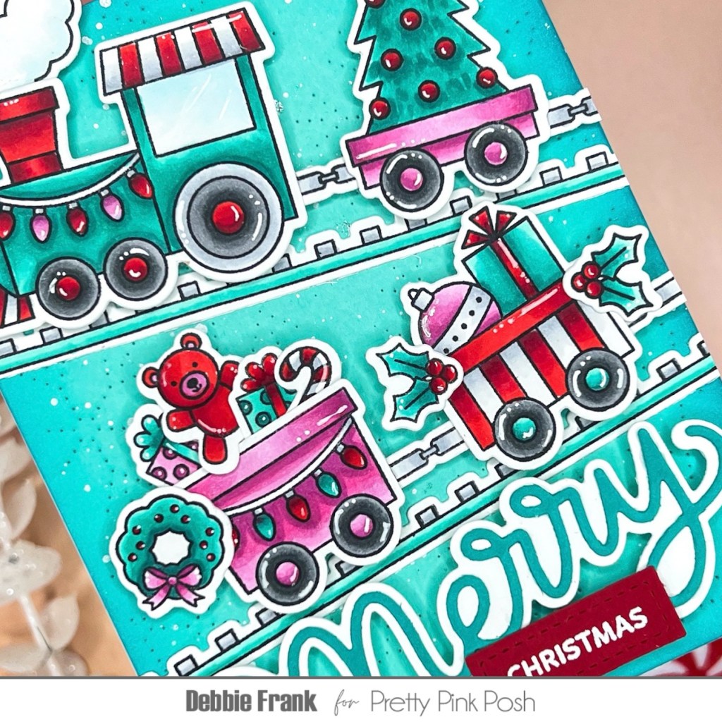 Hi crafty friends! Here with the Christmas Train Stamp set from the new Holiday Release over at Pretty Pink Posh! All the new stamp sets, dies and stencils are so fantastic! The whole release is packed with so cuteness and this set is definitely top of the list! I knew that I wanted to color it up right away!
