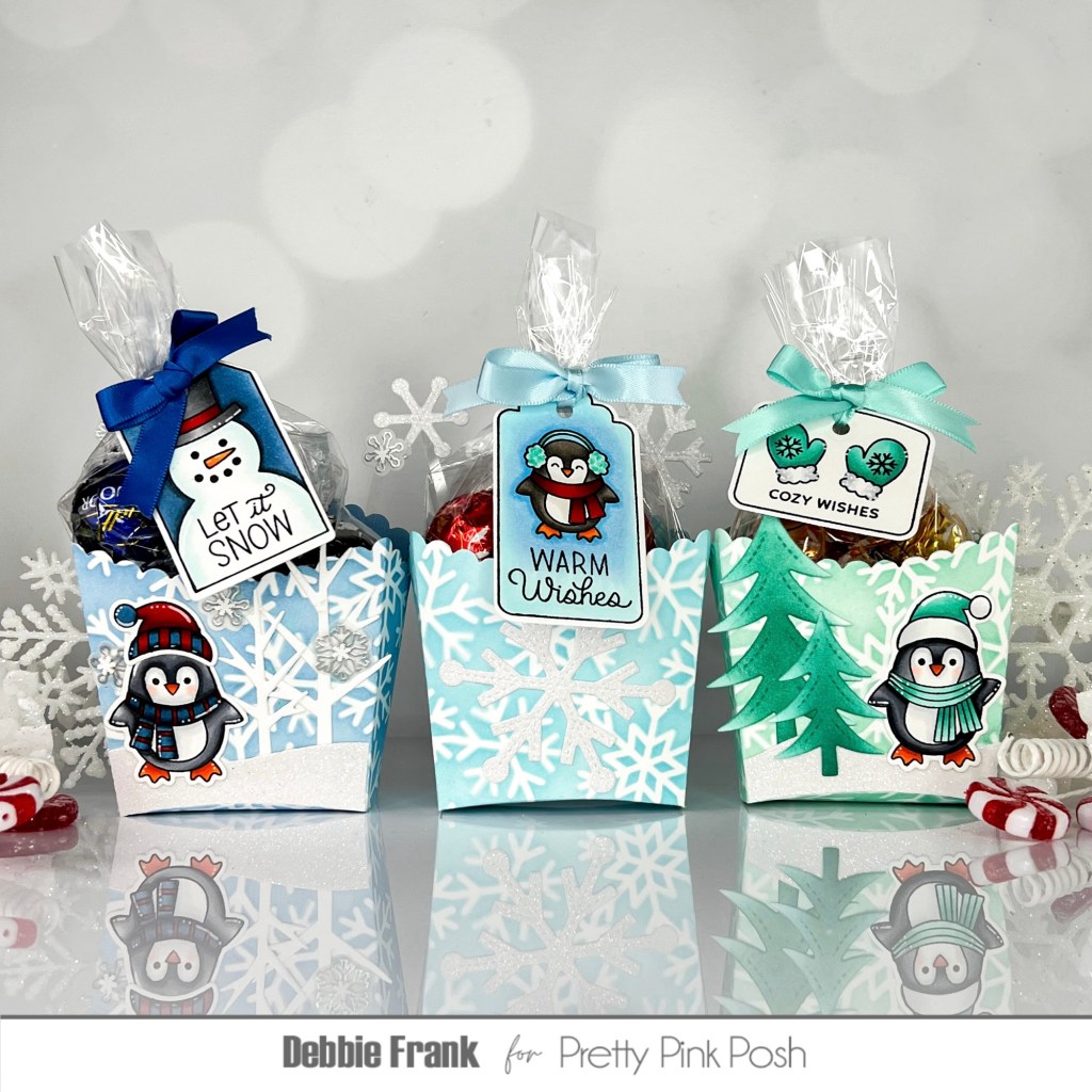 For today I made with the Birthday Treat Boxes Dies with the new Winter Tags Stamp set! These were so fun to make with additional new products from the release.