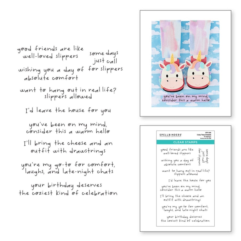 Hi crafty friends, here with the new Cozy Toes Friends Add On Etched Dies from Spellbinders. These dies go with the October 2024 Cozy Slippers Large Die of the Month Club. I love that Spellbinders did an add on that’s so darn cute. It makes a shark, Frog, cow, monster and the Unicorn slippers or you can use them on their own.