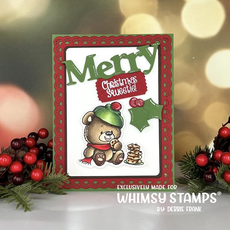 Hi Crafty friends, back with another Teddy Bear Christmas Sweets Clear Stamp set from Whimsy Stamps. I previously had a card using the same set, but when I made that one I did two of the images and didn’t have room for both images.