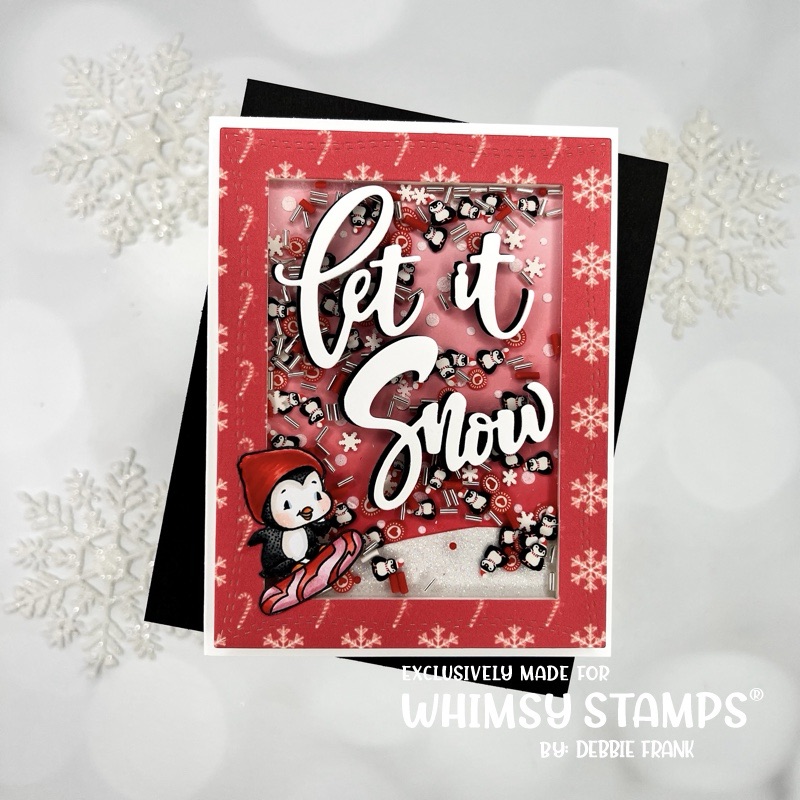 Hi friends, shaking things up a bit using the Shaker Maker Rectangle Dies from Whimsy Stamps. I have the perfect Penguin Shaker mix in my stash, so that was my inspiration!