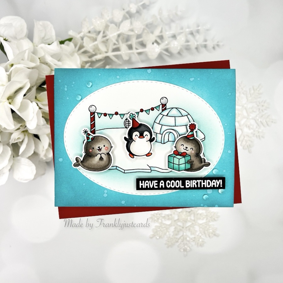 Let’s get started with my card for today! I started off by stamping out the Igloo and ice from Cool Birthday Clear Stamp and Die Bundle on to X-Press It smooth White card stock as well as some of the images. But not too close together, I die-cut out the Igloo and Iceberg with the Nested Stitched Ovals Dies later, so they will be directly on the Nested Stitched Oval. I then copic colored in the images with,