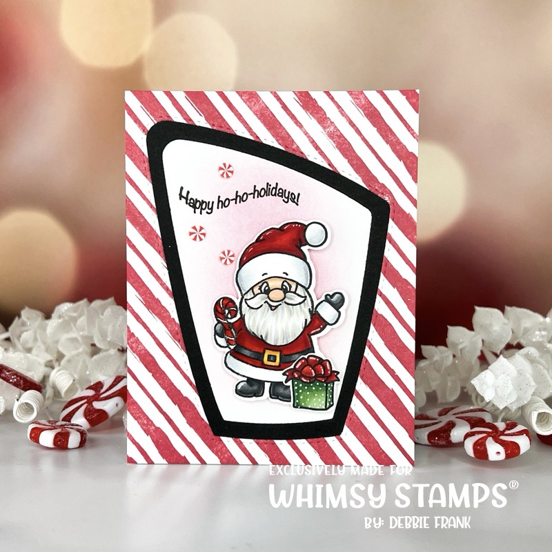 I knew that I was going to use the Santa and Friends Stamp Set from Whimsy Stamps. With this Santa holding the Candy Cane I was too perfect for the Brushed Stripes Background Rubber Stamp.