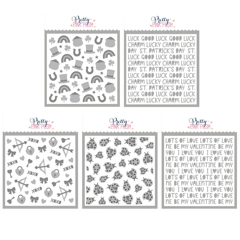 Hi friends, it’s release day of the Valentine’s Day/St. Patrick’s Day from Pretty Pink Posh Stamps! This release is packed with all kinds of goodies! I actually started off making the St. Patrick’s day themed products. I’m kinda shocked that I didn’t start off with the adorable Ladybug Shaker Dies!