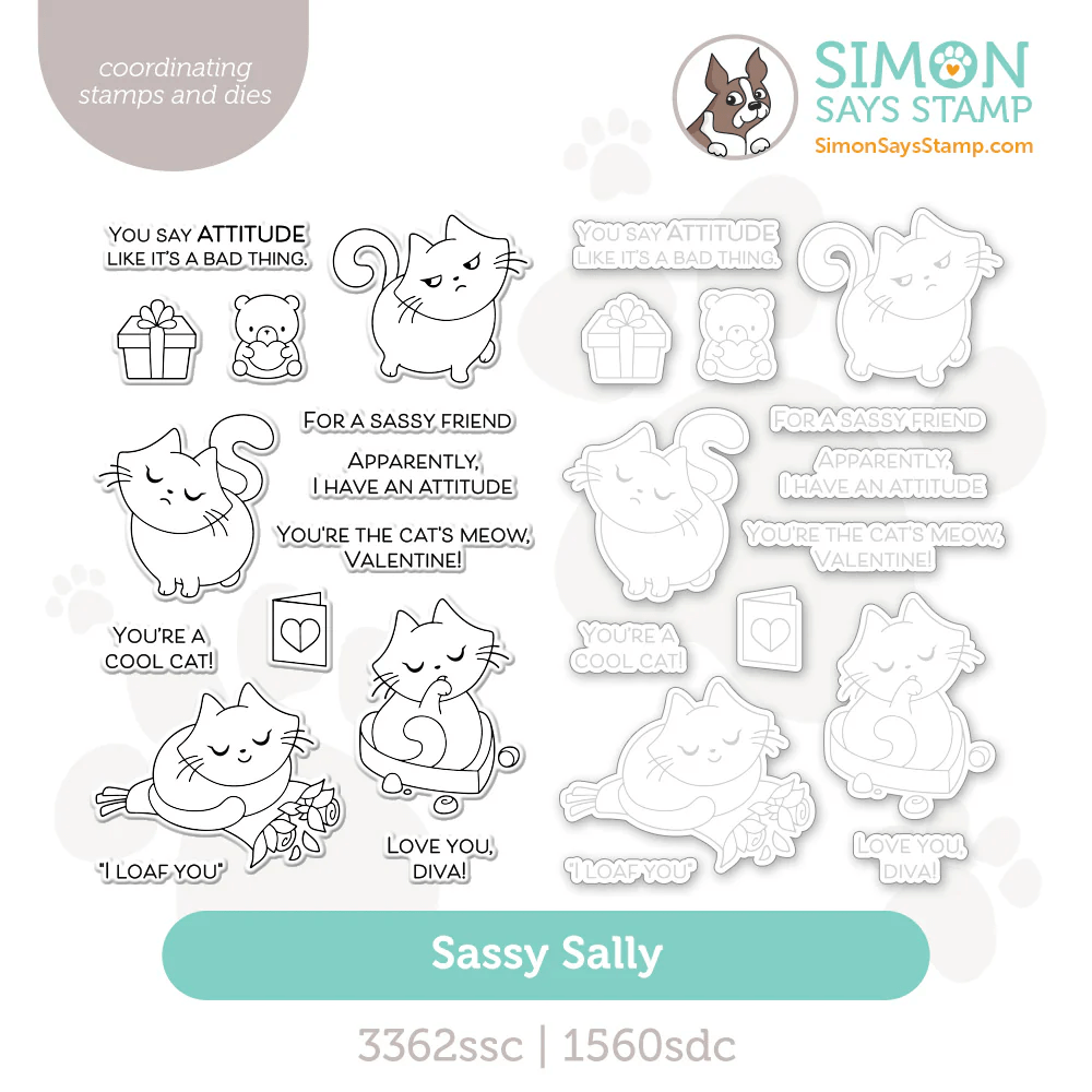 Hi friends, the new Heart to Heart Release over at Simon Says Stamp is now available! Today, I have the Sassy Sally Stamp set! How cute are they? Totally a cat attitude! The set does come with Coordinating dies but I didn’t receive them.