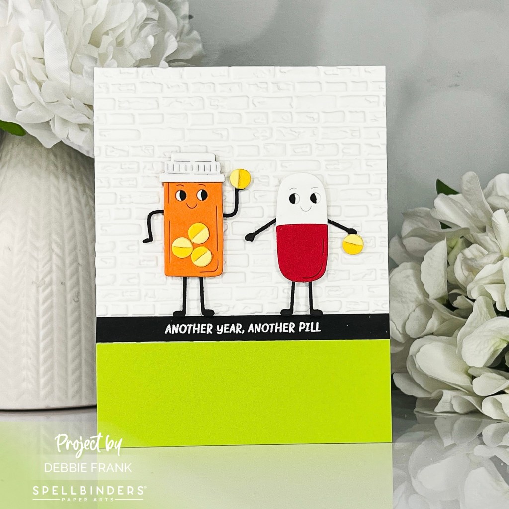 How funny are these pills?! This is the Favorite Side Effect Dies from the This is Life Collection. I die-cut out the bottle with the pills. The one looks like it’s bouncing a ball!🤣