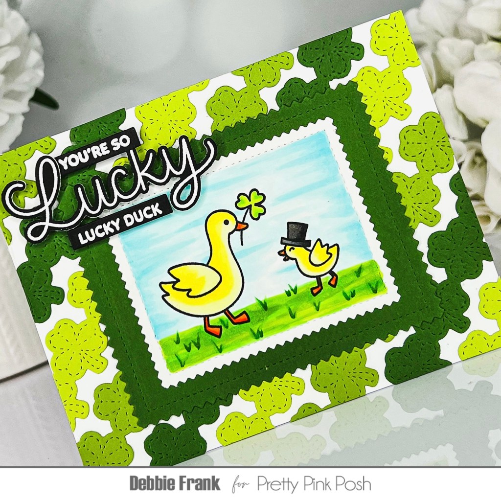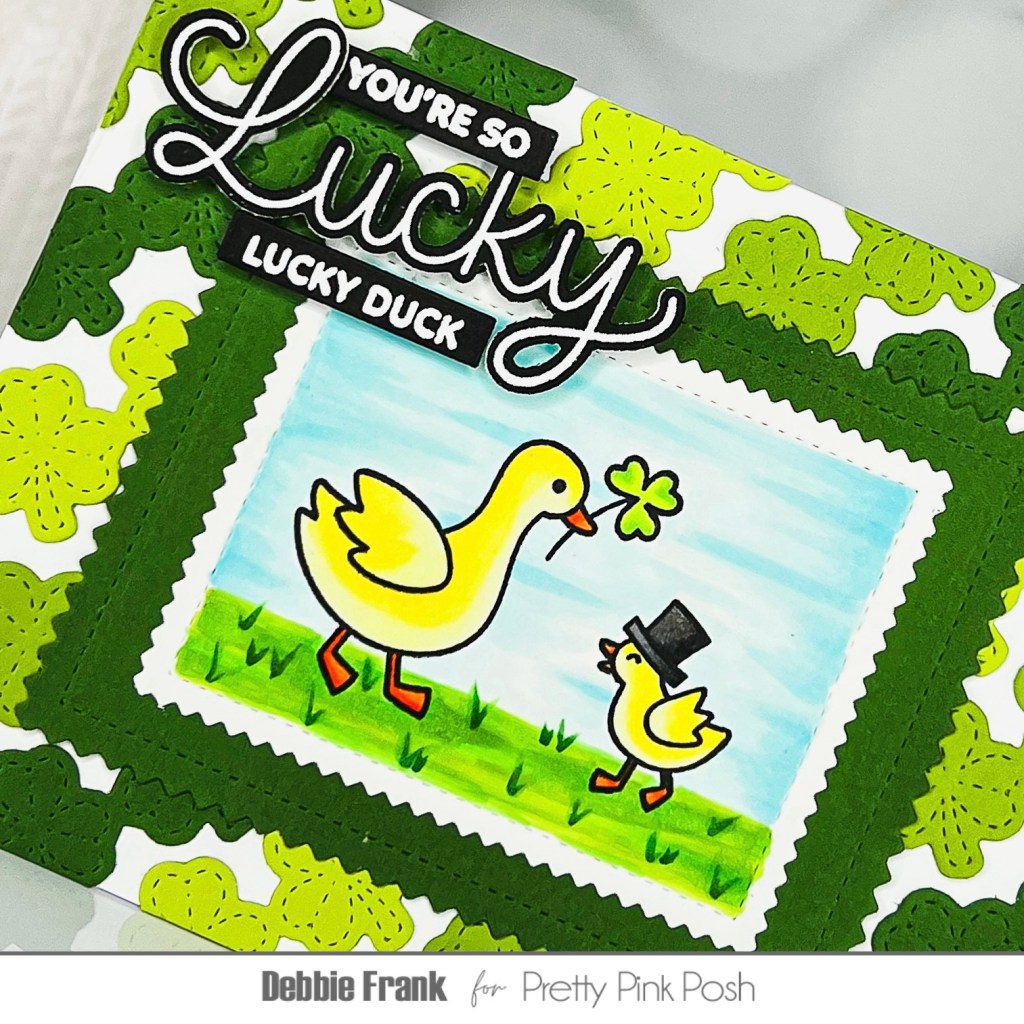 Hi friends, how cute are the Lucky Animals Stamps set from the Valentine’s Day/ St. Patrick’s Day release from Pretty Pink Posh Stamps. I got a little creative for me on coloring in the background for this card!