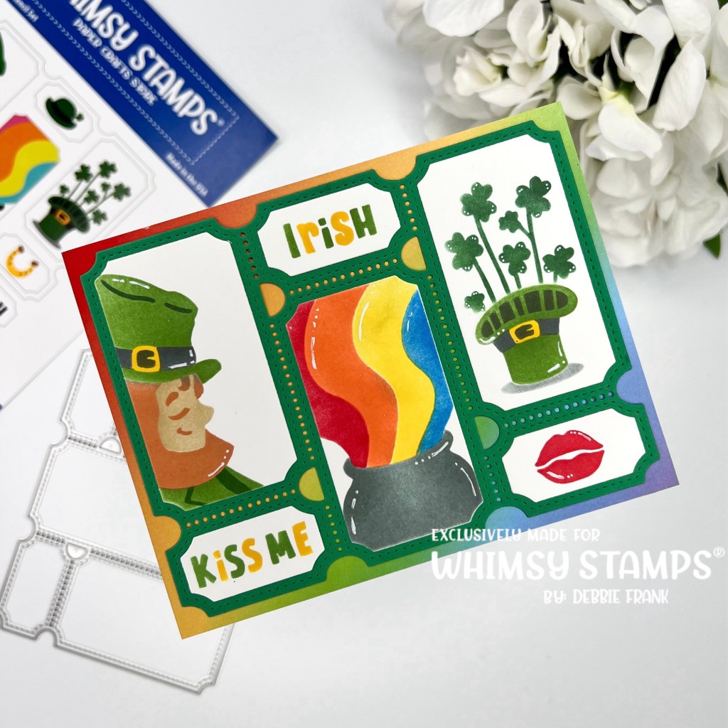 Hi friends, here with a quick St. Patricks Day card using the new Terrific Ticket St. Patrick Stencil from Whimsy Stamps newest release.