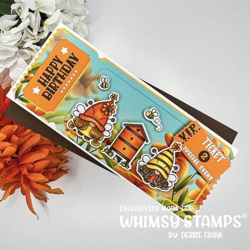 Hi Gnomies! The new release is here at Whimsy Stamps with the Terrific Slim Ticket Dies along with the Ticket to Celebrate Stamp!