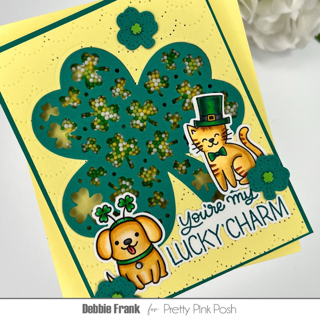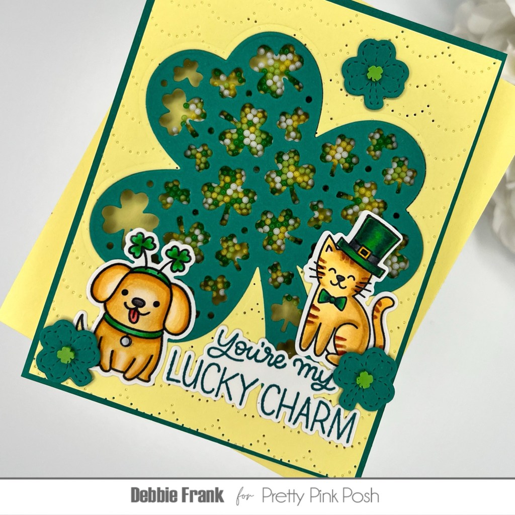 Hi Crafty friends, here with the Decorative Shamrock Shaker Die for the Lucky Theme week here at Pretty Pink Posh!They are having a sale with 15% off in the Lucky category over at PPP this week!